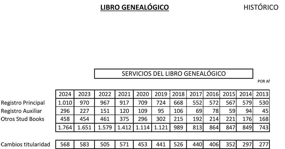 Es importante destacar que el número de nacimientos reflejado en el registro corresponde al año en que se realiza la actualización, y no necesariamente al año de nacimiento de los ejemplares. Además, el registro auxiliar también ha visto un aumento, incluyendo caballos con orígenes total o parcialmente desconocidos. Este registro abarca aquellos ejemplares que fueron identificados mediante un documento de identificación equina de una comunidad y que, posteriormente, han sido reconocidos como caballos del Libro Genealógico.