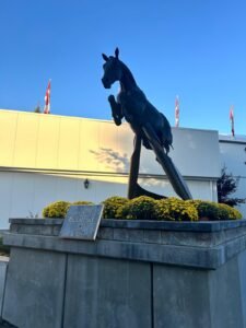 Ahora podemos encontrar la estatua de Hickstead en las instalaciones donde tanto profesionales como aficionados siguen honrando al caballo por sus triunfos pasados. Emblema canadiense