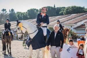 La categoría de 1’20 metros, patrocinada por Amigos del Caballo & Meyer, fue la que contó con mayor participación. Alexandra Woivre Gómez, primera en salir a pista, marcó el ritmo al completar el recorrido en 60’86 segundos y sin penalizaciones junto a Et Voila Aw. Luis Fernández Rey, que en esta ocasión compitió con dos caballos, logró la segunda posición montando a Atlanta De Ste Anne, deteniendo el cronómetro en 62’22 segundos. Finalmente, Paloma Boyarizo Hernández, con Costera De La Huerta, obtuvo el tercer puesto al terminar sin faltas en 62’45 segundos, muy cerca del tiempo de Luis.