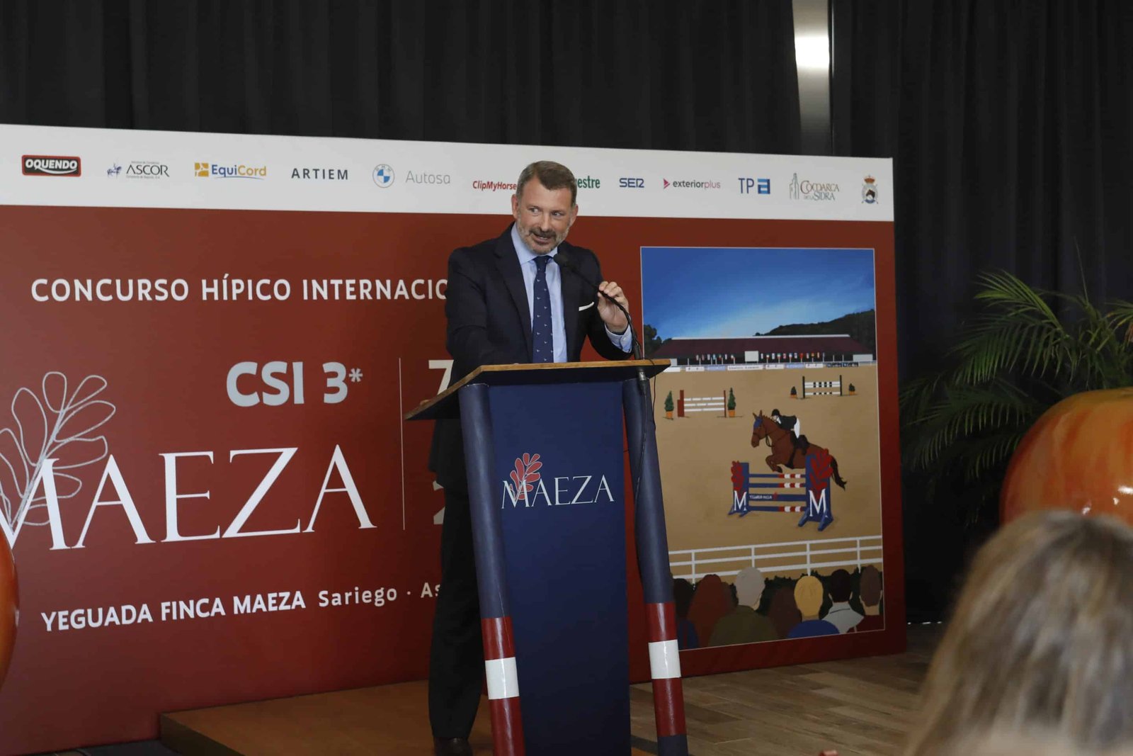 Muchos medios y autoridades han acompañado a la familia Bares Maestre, propietarios de Yeguada Finca Maeza en un acto en el que Álvaro Arrieta, Presidente de Oxer Sport, empresa organizadora del evento, ha explicado que la próxima edición de la competición internacional será de nuevo un CSI3* de tres jornadas de duración. También ha destacado que el evento seguirá muy ligado a la Comarca de la Sidra y a Asturias y ha agradecido el apoyo de patrocinadores, instituciones y medios de comunicación.
