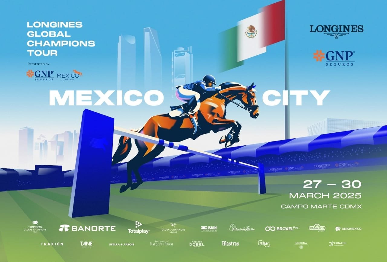 El póster oficial de la temporada 2025 presenta un diseño audaz y contemporáneo que combina la excelencia deportiva con una narrativa visual única. Muestra la majestuosidad del Campo Marte, la potencia de los caballos más importantes del mundo y la energía vibrante de la Ciudad de México.