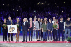 El sábado por la noche, el compañero de Willem Greve, Carambole (San Patrignano Cassini x Concerto II), recibió una ceremonia de retiro en Jumping Amsterdam 2023.