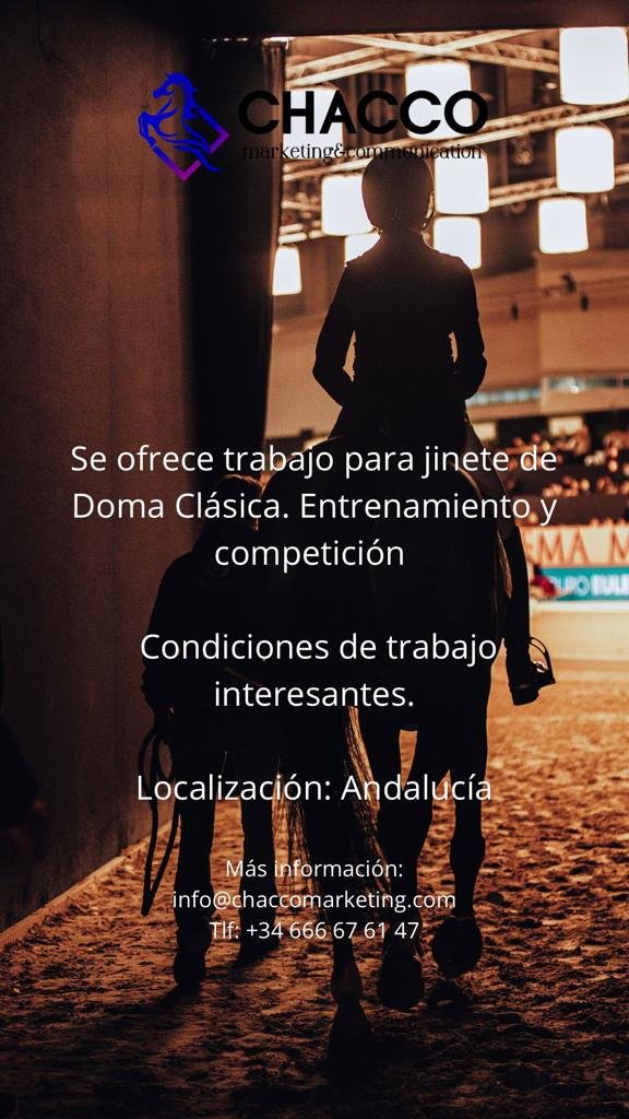 Chacco Marketing selecciona jinete de Doma Clásica para proyecto interesante en el sur de España.