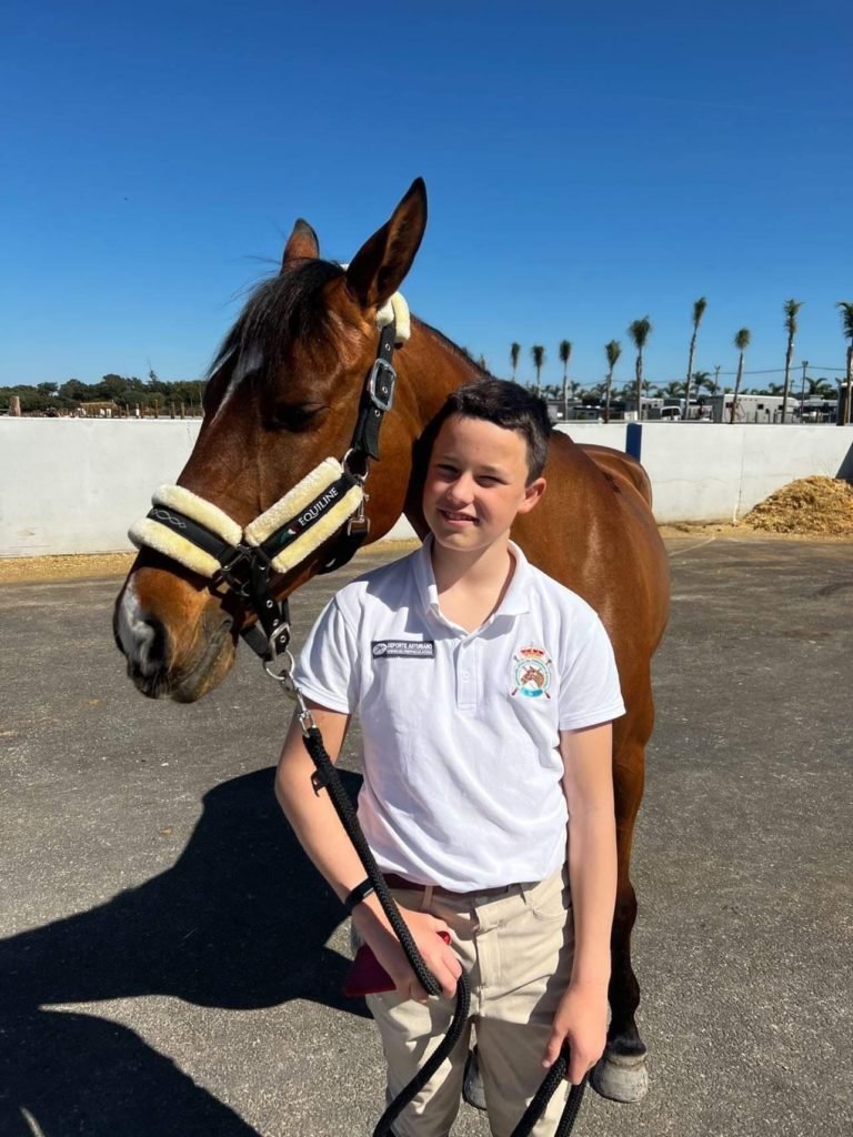 Daniel nos ha contado que tiene trece años y que es infantil de segundo año y lleva encima de un caballo más de seis años, entrenando con Ari desde hace dos años y medio. Actualmente, se desarrolla como profesional del deporte ecuestre en el Centro Deportivo El Forcón, en Asturias.