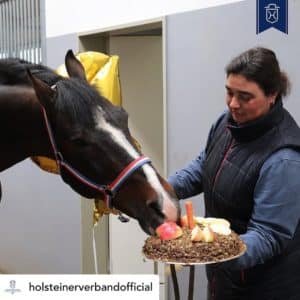 El semental celebró su cumpleaños con un puré del equipo de Holsteiner Verband Hengsthaltungs GmbH y, por supuesto, tiempo libre en el paddock 🥳 «Estamos muy felices y agradecidos de que Casall sea tan core y en forma a sus 24 años», dice el CEO Sebastian Rohde 🙏🏻 «Muchas gracias a este Presente a todo el equipo que ha sido tan apasionado por los sementales y su bienestar durante muchos años. 👏🏻 #Holsteinerassociation #holsteinerstallions «